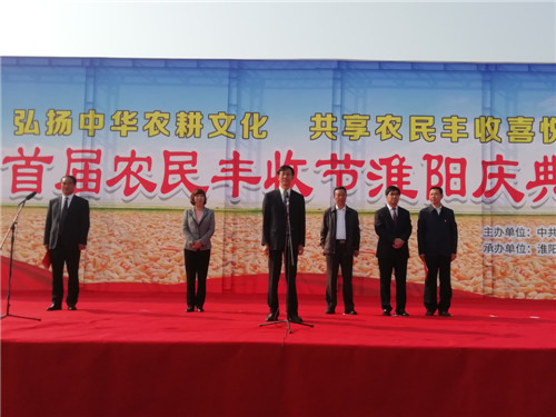 縣委書記馬明超宣布淮陽(yáng)縣首屆“中國(guó)農(nóng)民豐收節(jié)”慶典活動(dòng)開幕??h委副書記、政法委書記岳新坦主持慶典儀式。戴亮和副縣長(zhǎng)王汝凌分別致辭。