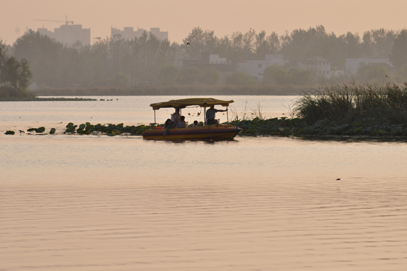 9月24日,天空藍得有些醉人,微風(fēng)輕撫著湖面,泛起點點漣漪。游走于龍湖邊,已不見鮮艷的荷花,荷葉在慢慢變黃,大片大片的蘆葦隨風(fēng)搖曳生姿……龍湖的秋天是美麗的,來龍湖賞秋吧!
