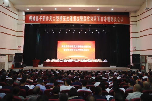 10月7日上午,鄲城縣干部作風(fēng)大整頓第四次查處通報(bào)大會(huì)暨脫貧攻堅(jiān)“百日沖刺”動(dòng)員會(huì)召開。會(huì)議貫徹落實(shí)全省脫貧攻堅(jiān)電視電話會(huì)議和脫貧退出培訓(xùn)會(huì)議精神,聚焦脫貧摘帽目標(biāo)任務(wù)和作風(fēng)問(wèn)題,分析當(dāng)前形勢(shì),進(jìn)一步動(dòng)員全縣上下統(tǒng)一思想、提振精神,強(qiáng)化責(zé)任、盡銳出戰(zhàn),向脫貧摘帽發(fā)起總攻。縣委書記羅文閣出席會(huì)議并講話,縣長(zhǎng)李全林主持會(huì)議??h領(lǐng)導(dǎo)崔衛(wèi)國(guó)、李建軍、姜永來(lái)、侯磊、吳青鋒、王智華、呂振龍、馬超、胡友濤、崔衛(wèi)華、劉輝等參加會(huì)議。