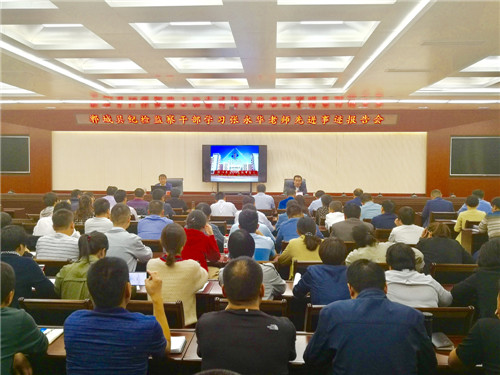 為進一步強化全縣紀(jì)檢監(jiān)察干部的政治擔(dān)當(dāng)、責(zé)任擔(dān)當(dāng)、廉潔擔(dān)當(dāng)、形象擔(dān)當(dāng),10月10日晚,鄲城縣紀(jì)委舉行紀(jì)檢監(jiān)察干部學(xué)習(xí)張永華先進事跡報告會,邀請鄲城一高教師張永華講述其感人事跡、奮斗經(jīng)歷、工作感悟和一高創(chuàng)業(yè)跨越歷程??h委常委、縣紀(jì)委書記、縣監(jiān)委主任胡友濤主持報告會。