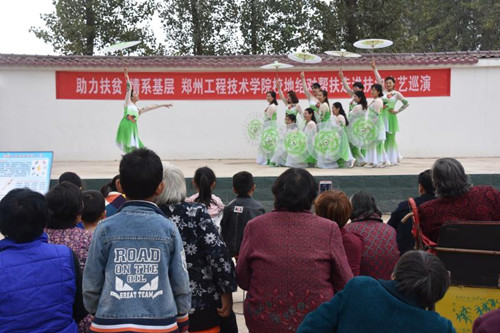 歡快的歌曲唱起來(lái),動(dòng)人的舞蹈跳起來(lái),熱情的掌聲響起來(lái)!10月20至21日,鄭州工程技術(shù)學(xué)院音樂(lè)舞蹈學(xué)院黨總支書(shū)記魏瑞娟帶著學(xué)院師生走進(jìn)扶溝鄉(xiāng)村,把精彩的文藝演出和普法宣傳送到群眾身邊,為脫貧攻堅(jiān)加油助力。