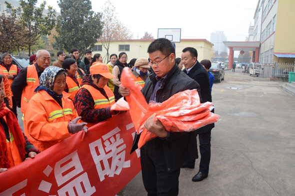 近日寒流來襲,氣溫驟降,連續(xù)的低溫降雨天氣讓人感受到了冬天的寒冷,為了確保縣城區(qū)環(huán)境衛(wèi)生干凈整潔,廣大環(huán)衛(wèi)工人們始終堅(jiān)持冒嚴(yán)寒每天起早貪黑打掃城區(qū)衛(wèi)生,默默無(wú)聞堅(jiān)守在工作一線。12月3日,西華縣媧城商會(huì)會(huì)長(zhǎng)黃鳳芝攜手愛心企業(yè)山西汾酒集團(tuán)代理商宋二領(lǐng)來到城管局向環(huán)衛(wèi)工人捐贈(zèng)一批環(huán)衛(wèi)保潔防寒服,在寒冷冬天為堅(jiān)守縣城區(qū)保潔一線的每位環(huán)衛(wèi)工人送去溫暖。