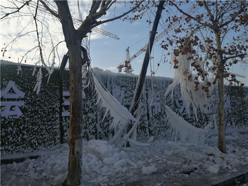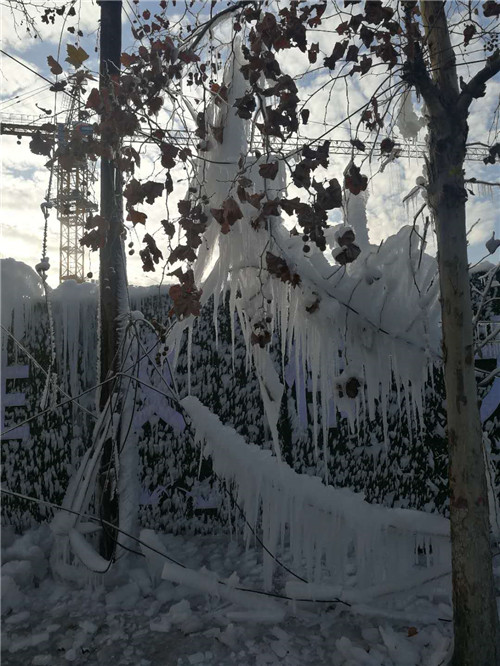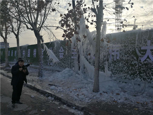 周口這兩天有多冷?周口一處工地圍擋噴淋用“噴水成冰”來(lái)告訴你天多冷。