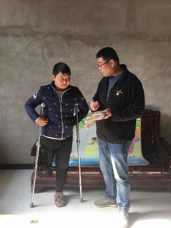 2018年10月4日,李霄在北丁莊村走訪,發(fā)現(xiàn)丁振偉輟學(xué)在家。原來,丁振偉在縣城一所民辦學(xué)校讀書,成績優(yōu)異,七年級時患病,四處求醫(yī)一年多,最終右腿高位截肢才保住性命,一直在家休養(yǎng)。