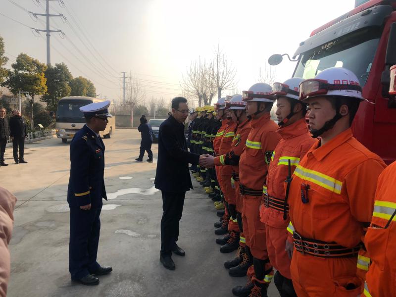 在開發(fā)區(qū)消防大隊(duì),王文峰與每一位消防隊(duì)員握手,詳細(xì)詢問他們的工作、生活、學(xué)習(xí)情況。王文峰指出,2018年,開發(fā)區(qū)消防大隊(duì)牢記“聽黨指揮,能打勝仗,作風(fēng)優(yōu)良”,努力訓(xùn)練,敢于戰(zhàn)斗,面對(duì)一系列急難險(xiǎn)重任務(wù)能夠拉得出、打得贏,為保障人民群眾生命財(cái)產(chǎn)安全作出了重要貢獻(xiàn)。新的一年,全市消防救援隊(duì)伍要繼續(xù)發(fā)揚(yáng)特別能吃苦、特別能戰(zhàn)斗的優(yōu)良傳統(tǒng),加強(qiáng)應(yīng)急救援綜合能力建設(shè),真正發(fā)揮好應(yīng)急救援主力軍和國家隊(duì)的職能作用。