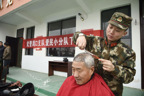鄉(xiāng)村老年人們的身體狀況牽動(dòng)著支隊(duì)領(lǐng)導(dǎo)的心,他們派出支隊(duì)醫(yī)務(wù)人員走進(jìn)村落,在簡易的地方辦起巡診。藥盒上的細(xì)心標(biāo)記,手把手的診療,情真意切囑咐,都是官兵們真切的表達(dá)。支隊(duì)理發(fā)員帶著理發(fā)工具和一顆赤誠的心來到了村里,為老人們邊理發(fā)邊嘮家常,老人臉上樂開了花兒,笑著說“我家孫子和你大小差不多哩!”村里的孩子們也很喜歡這群穿著軍裝的叔叔們,不僅因?yàn)樗麄兠看蝸矶紩?huì)送上精美學(xué)習(xí)用品,先進(jìn)的多媒體設(shè)備,更因?yàn)樗麄兩砩宪娙颂赜械呢?zé)任與擔(dān)當(dāng)。