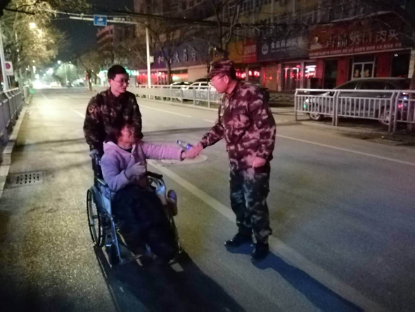 人民軍隊(duì)愛人民,無論山高水遠(yuǎn),歲暮天寒。2月18日凌晨1時(shí)許,武警周口支隊(duì)政委韓偉鋒查勤歸來,在支隊(duì)大門口恰巧遇到一位大姐獨(dú)自一人搖著輪椅艱難前行。當(dāng)晚氣象局預(yù)報(bào)有降雪,實(shí)時(shí)氣溫也只有-4℃。夜深人靜,天凝地閉,韓政委有些擔(dān)憂這位大姐的安全,連忙上前詢問情況,并步行推著輪椅將大姐送至目的地。其實(shí),這件事只是武警周口支隊(duì)愛民助民工作的一個(gè)縮影。
