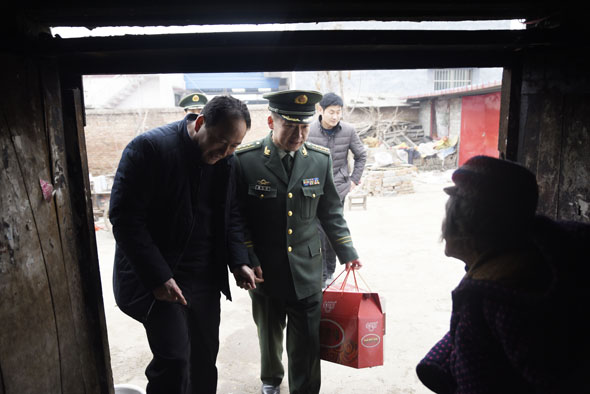 商水縣湯莊鄉(xiāng)付樓村是武警周口支隊(duì)的精準(zhǔn)扶貧村,今年春節(jié)期間,武警周口支隊(duì)支隊(duì)長楊大嶺帶著周口支隊(duì)愛民小分隊(duì)再次來到了村中,送上大米、面粉、油等生活物資,更是送來了生活上的幫助和情感上的關(guān)懷。