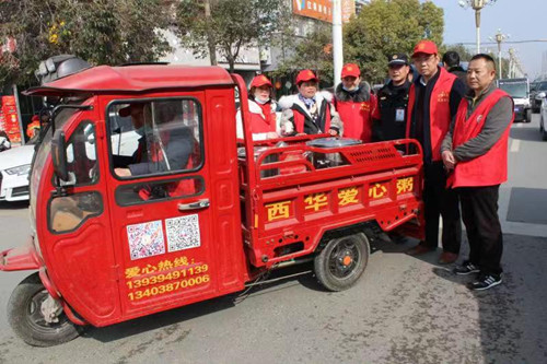 西華縣愛(ài)心粥屋組織個(gè)私黨員志愿者在女?huà)z廣場(chǎng)開(kāi)展“愛(ài)心茶水送滿(mǎn)城”活動(dòng),擺攤設(shè)點(diǎn),出動(dòng)流動(dòng)車(chē),免費(fèi)送愛(ài)心棗茶。
