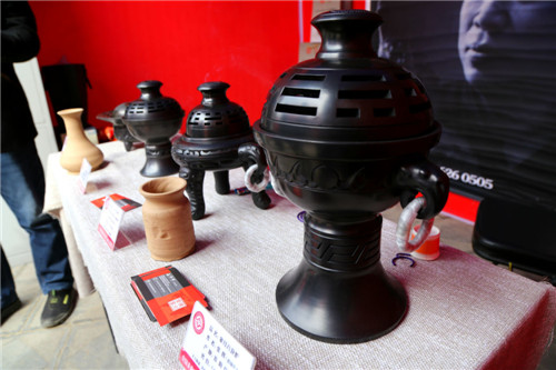 在河南省非物質(zhì)文化遺產(chǎn)黑陶技藝展示臺(tái)前,代表性傳承人、淮陽縣工藝美術(shù)家協(xié)會(huì)主席張輝,正在向游客介紹黑陶的發(fā)展歷程。隨處可見的普通膠泥,經(jīng)過匠人之手便可變成精美的黑陶器具,這讓眾人感嘆不已。張輝說,這是老祖宗留下的智慧結(jié)晶,也是非物質(zhì)文化遺產(chǎn)的寶貴財(cái)富,他要永遠(yuǎn)傳承下去。