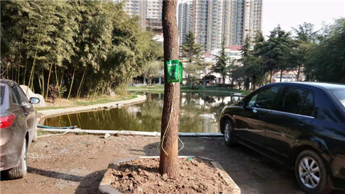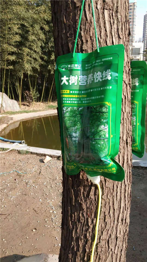 3月18日,記者在市教體局院里看到,幾棵樹上都掛著一個綠色的塑料袋,塑料袋上寫著“大樹營養(yǎng)快線”,袋口向下連著一個導(dǎo)管,導(dǎo)管與普通的輸液器非常相像,只是在中間的位置分成了兩根,分出來的兩根導(dǎo)管末端各連著一個針頭,針頭插進(jìn)大樹接近樹根的位置。據(jù)悉,這些“營養(yǎng)快線”可以為樹木補(bǔ)充營養(yǎng)和水分,促進(jìn)樹木生根、發(fā)芽,幫助樹木增強(qiáng)抗病能力,提高樹木的成活率,保證樹木整體長勢。
