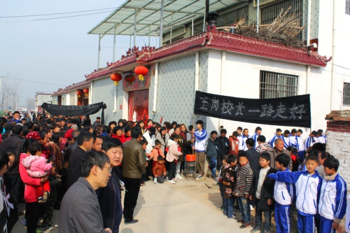 “教育師魂鑄就止步盛年悲矣,杏壇大愛揮灑平民風(fēng)范偉哉!”3月24日上午,鄲城縣東風(fēng)鄉(xiāng)鄭莊行政村大王莊一個普通的農(nóng)家院內(nèi)外,挽幛輕垂,哀樂低回。數(shù)千名師生、群眾自發(fā)前來送別年僅37歲的該村小學(xué)校長王崗。