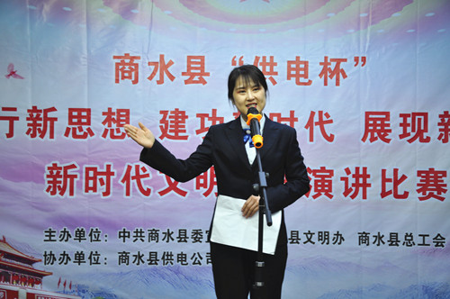 評(píng)委從演講內(nèi)容、儀表、語(yǔ)言表達(dá)等方面對(duì)參賽選手進(jìn)行了評(píng)判。經(jīng)過(guò)激烈角逐,來(lái)自舒莊鄉(xiāng)的李莉、縣電業(yè)局的劉斯 雅等10多名選手分獲一二三等獎(jiǎng),譚莊鎮(zhèn)等單位分獲優(yōu)秀組織獎(jiǎng),優(yōu)秀選手將代表商水縣參加全市的演講選拔賽。