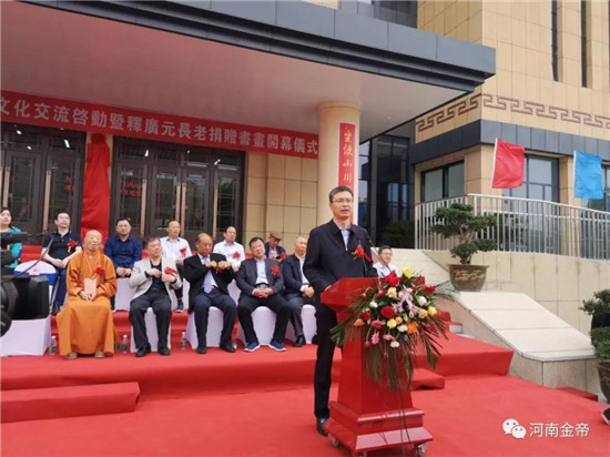 省文聯(lián)黨組書記王守國在開幕式上說,釋廣元長老不顧90多歲高齡,帶領(lǐng)50多名臺灣同胞,過??缃?,榮歸故鄉(xiāng),出席捐贈活動,這不僅匯融了釋廣元長老的“鄉(xiāng)愁”情節(jié),更是釋廣元長老不忘初心,反哺家鄉(xiāng)情懷的具體體現(xiàn)。希望越來越多的臺灣同胞蒞臨河南,感悟中原,融入中原,攜手并進(jìn)砥礪前行共筑中國夢!