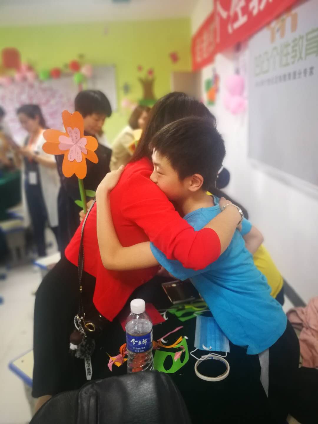 活動(dòng)上,在專業(yè)手工教師的指導(dǎo)以及媽媽的配合下,這些小記者自己動(dòng)手利用剪刀、雙面膠、彩紙等學(xué)習(xí)制做康乃馨紙花。五層紅色的花瓣、兩片綠葉、一根花枝,經(jīng)過近一個(gè)小時(shí)的反復(fù)實(shí)踐,一朵朵紙花陸續(xù)制好,成功的喜悅映紅了孩子們的笑臉。在祝??ㄆ蠈懴聦?duì)媽媽的祝福語后,孩子們手捧用彩紙包裝好的紙花,拿著祝福卡送到母親手中,和媽媽熱情擁抱、向媽媽表達(dá)愛的祝福。