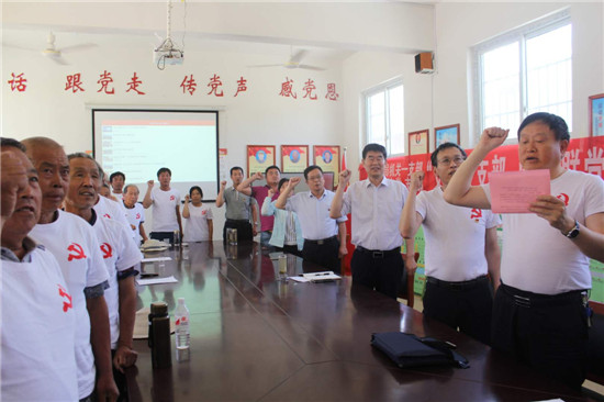 縣教體局黨組書記、局長劉現(xiàn)營,城郊鄉(xiāng)鄉(xiāng)長王忠,縣教體局機關一支部書記、主任科員張本寶,城郊鄉(xiāng)副鄉(xiāng)長晉惠萍等帶領與會黨員舉起右拳,挺起胸膛,莊嚴宣誓,重溫了入黨誓詞。