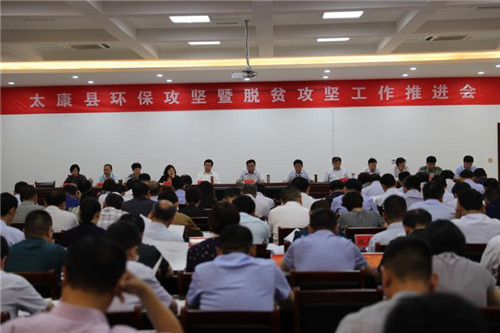 太康縣日前在脫貧攻堅(jiān)指揮部視頻會(huì)議室召開環(huán)保攻堅(jiān)暨脫貧攻堅(jiān)工作推進(jìn)會(huì)。王國(guó)璽、李錫勇等縣四個(gè)班子領(lǐng)導(dǎo)及縣副處級(jí)以上干部、各鄉(xiāng)鎮(zhèn)黨委書記、縣直單位主要負(fù)責(zé)人、縣委各部委辦常務(wù)副職參加會(huì)議。