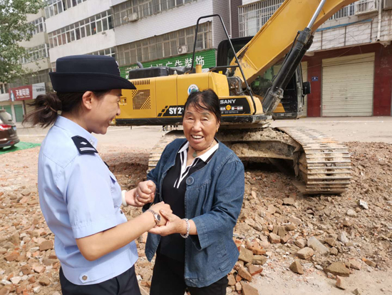 “創(chuàng)衛(wèi)不留死角,想盡辦法也要給市民良好的出行體驗(yàn)?!笔泄簿终匍_黨委會(huì)議專題研究建新路西段附近居民出行問題,發(fā)出“克服困難、自掏腰包、推倒違建、平整道路”的指令,號(hào)召全警幫助居民實(shí)現(xiàn)安全出行。“這些民警、社區(qū)干部都跟我的孩子差不多大,看著他們頂著大太陽清理雜物,夜里還在加班加點(diǎn)工作,我給他們說‘孩子來家喝口水,吃個(gè)飯’他們都笑著拒絕了。真感謝他們,也心疼他們。”說起“創(chuàng)衛(wèi)”以來,市公安局民警和社區(qū)干部的工作,70多歲的智老太眼含熱淚。