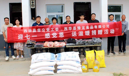 5月28日,西華縣非公黨工委聯(lián)合愛心企業(yè)開展“迎七一、感黨恩、送溫暖”捐贈(zèng)活動(dòng),西華縣非公黨工委書記李永民帶領(lǐng)非公黨工委工作人員、西華縣豫龍食品有限公司經(jīng)理李會(huì)霞,以及部分非公企業(yè)黨支部書記,為黃橋鄉(xiāng)敬老院送去了價(jià)值5000余元的衣服、豬肉、面粉、米、食用油等物品。