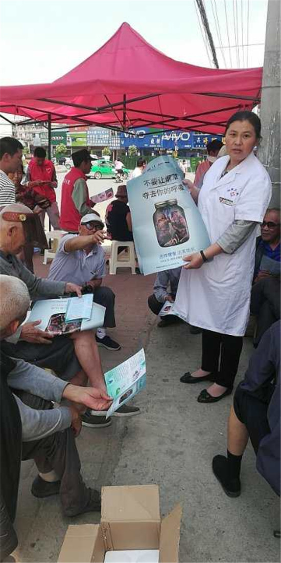 該縣疾控中心組織8名工作人員,在支農(nóng)路北段以懸掛宣傳主題橫幅、擺放宣傳展板、設(shè)立義診咨詢臺(tái)、發(fā)放宣傳資料等形式,向過往市民宣傳吸煙可導(dǎo)致肺部損傷和增加高血壓風(fēng)險(xiǎn)等危害,以及戒煙的方法等知識(shí),引導(dǎo)大家遠(yuǎn)離煙草,養(yǎng)成健康、文明的生活方式。
