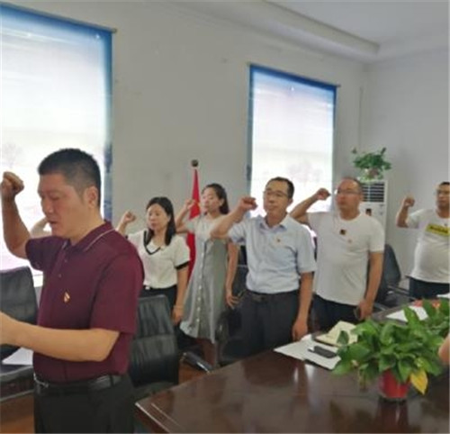 活動還對聞榮玲、王偉兩名預備黨員轉為正式黨員進行了審議、討論、表決;全體黨員面對黨旗,重溫了入黨誓詞;全體黨員還進行了慶祝建黨98周年知識測試。