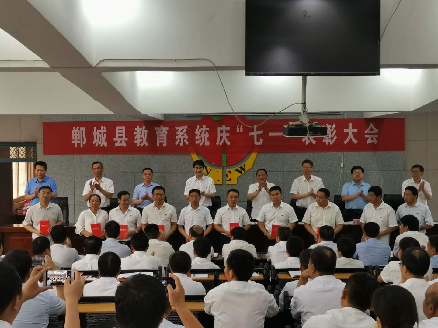 6月26日下午,鄲城縣教育系統(tǒng)慶“七一”表彰大會召開??h教體局黨組書記、局機(jī)關(guān)黨委書記、局長劉現(xiàn)營出席會議并講話。局黨組成員、副局長張祥增主持會議。