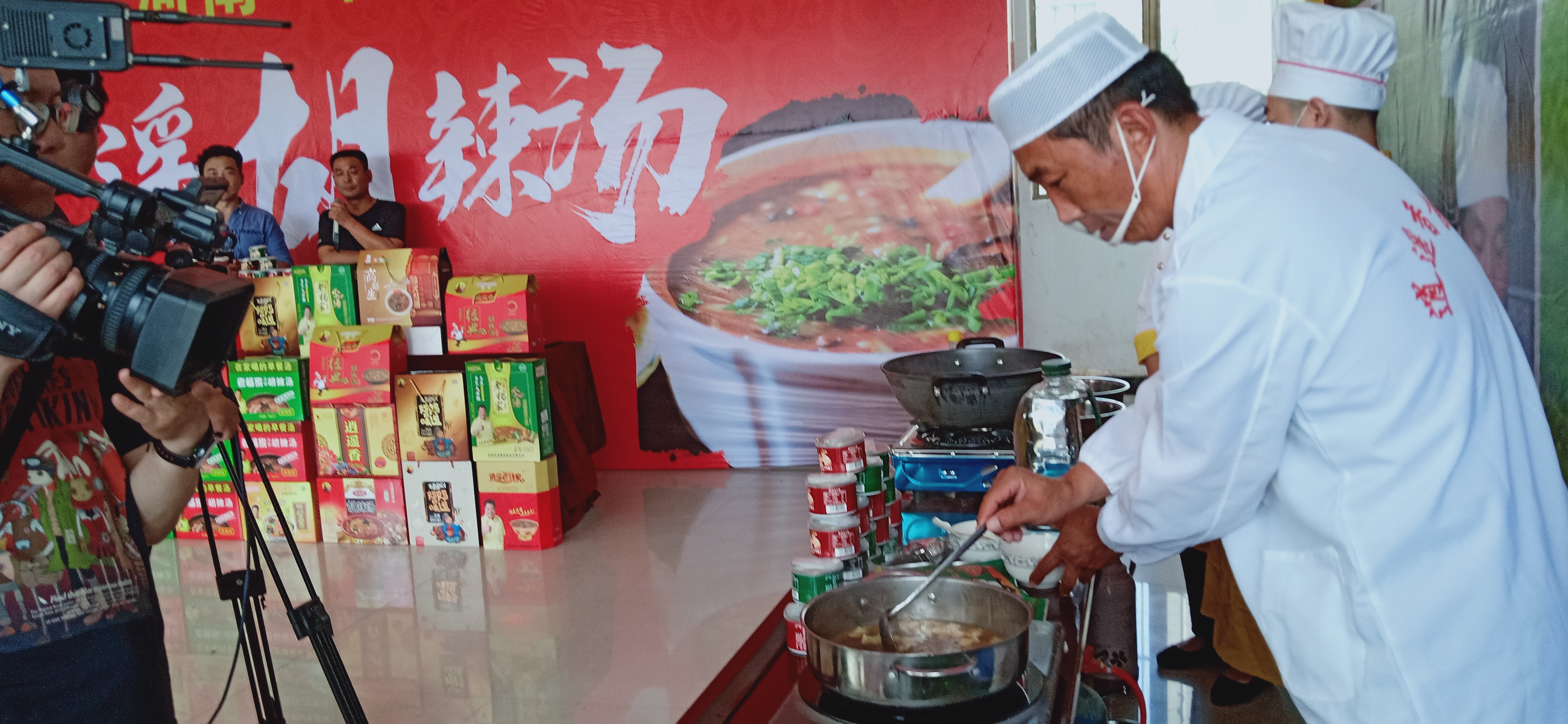 當(dāng)日下午14時至16時,“帶你尋味、西華特色”淘寶直播胡辣湯專場,在西華縣逍遙鎮(zhèn)政府舉辦。來自高群生、逍遙香、京遙、老楊家四家胡辣湯企業(yè)參加了直播活動。四家胡辣湯企業(yè)負(fù)責(zé)人依次推介了自家的產(chǎn)品,并現(xiàn)場直播熬制胡辣湯的過程,讓網(wǎng)友跟著淘寶直播學(xué)習(xí)熬制胡辣湯,引得眾多網(wǎng)友圍觀、點贊。