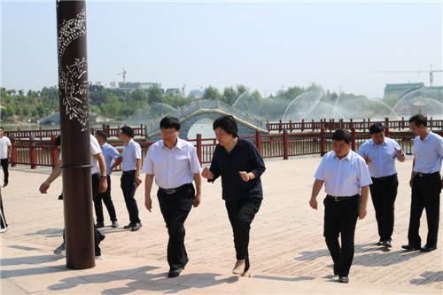 路云一行先后來到上清湖公園、閆溝河公園、陳摶公園提升暨古城墻恢復項目現(xiàn)場以及老子學院、渦河濕地公園等地進行實地察看,對鹿邑縣的國土綠化、“百城提質建設工程”、城市規(guī)劃建設及精細化管理等相關工作給予充分肯定。