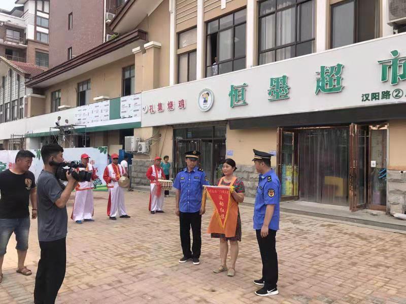 為鞏固創(chuàng)衛(wèi)成果,提高城市精細(xì)化管理水平,川匯區(qū)持續(xù)開(kāi)展“紅黑旗”評(píng)選活動(dòng)。7月22日,在陣陣鑼鼓聲中,該區(qū)城管人員又為6家紅旗商戶(hù)、6家黑旗商戶(hù)分別懸掛紅黑旗。
