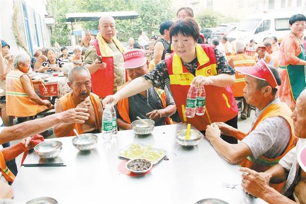 為幫助環(huán)衛(wèi)工做好防暑降溫工作,7月23日,太康縣總工會(huì)到該縣“愛(ài)心粥屋”看望慰問(wèn)環(huán)衛(wèi)工人,并捐贈(zèng)1萬(wàn)元現(xiàn)金和價(jià)值6000元的毛巾、礦泉水。圖為該縣總工會(huì)志愿者為環(huán)衛(wèi)工發(fā)放礦泉水。
