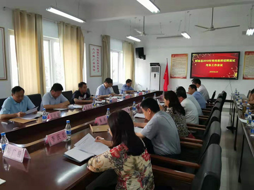 8月23日,鄲城縣召開(kāi)2019年特崗教師招聘面試考務(wù)工作會(huì)議,明確分工,強(qiáng)化責(zé)任,確??紕?wù)工作順利??h政府辦公室副主任楊培爭(zhēng)、縣紀(jì)委常委趙天位、縣編辦主任王民仰、縣教體局局長(zhǎng)劉現(xiàn)營(yíng)、縣人社局局長(zhǎng)劉自忠、縣公安局治安大隊(duì)教導(dǎo)員葛染,以及面試工作組全體人員參加會(huì)議。