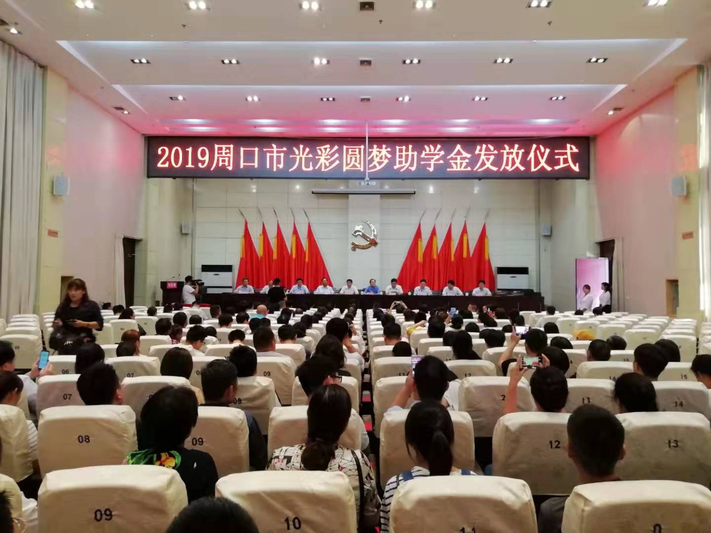 8月30日上午,2019年周口市“光彩圓夢”助學(xué)金發(fā)放儀式在川匯區(qū)舉行。市政協(xié)副主席、市工商聯(lián)主席趙萬俊,老領(lǐng)導(dǎo)李紹彬、白明寬,市委統(tǒng)戰(zhàn)部副部長、市工商聯(lián)黨組書記李飛,川匯區(qū)區(qū)委書記李宗喜,市工商聯(lián)副主席、周口市商會黨委書記徐公俊,市扶貧辦副主任程衛(wèi)東,川匯區(qū)區(qū)委常委、統(tǒng)戰(zhàn)部長宋煜及市直、區(qū)直有關(guān)單位負(fù)責(zé)同志出席儀式。