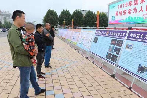 當(dāng)日上午,下了一夜的中雨終于逐漸停止。在縣人民廣場北側(cè),數(shù)十塊網(wǎng)絡(luò)安全宣傳展板一字排開,展板前,圍滿了打著雨傘的居民,他們仔細閱讀著展板上的內(nèi)容。有的還拿出手機不停地拍照。宣傳臺前,縣網(wǎng)信辦工作人員封中偉、曹超勇等人,一邊給群眾發(fā)放宣傳資料,一邊向群眾講解網(wǎng)絡(luò)安全知識。工作人員講得仔細,群眾聽得認真。