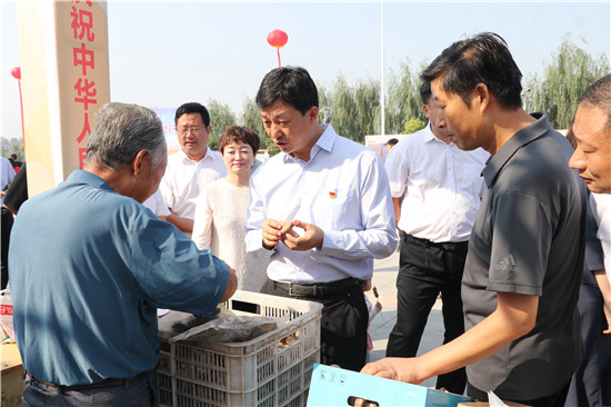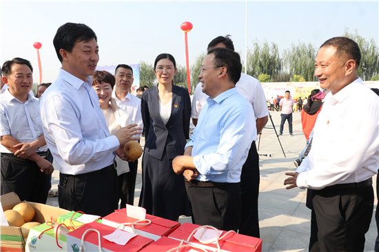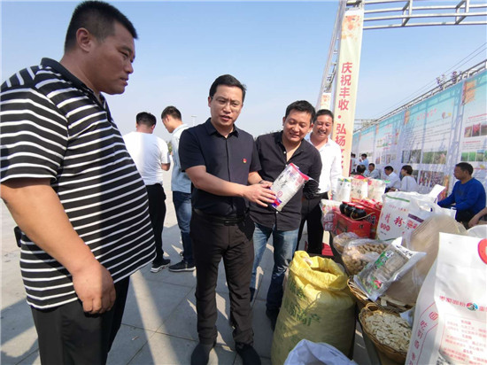 一問(wèn)一答間,爽朗的笑聲響徹節(jié)日上空,農(nóng)民們喜笑顏開(kāi),傳遞出濃濃的幸福。大棗、黑木耳、小麥粉、粉條等西華縣各具特色的農(nóng)產(chǎn)品紛紛亮相,除了展示各自的“增收實(shí)力”,也展示出幾年來(lái)發(fā)展農(nóng)業(yè)特色經(jīng)濟(jì)的豐碩成果。“政府搭臺(tái),農(nóng)民唱戲,每年一度的農(nóng)民豐收節(jié)既是農(nóng)民歡樂(lè)的節(jié)日,也是展銷(xiāo)農(nóng)產(chǎn)品的紐帶平臺(tái),今天我們奉母鎮(zhèn)展示了本地原生態(tài)粉條和純糧美酒,希望借助豐收節(jié)機(jī)遇,拓寬銷(xiāo)路實(shí)現(xiàn)農(nóng)民增收。”西華縣奉母鎮(zhèn)黨委書(shū)記陳鵬告訴記者。