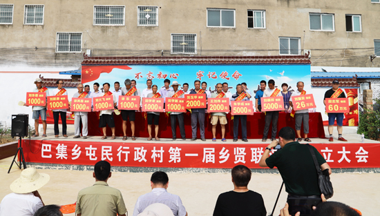 “段志軍每年都捐資捐物回報(bào)家鄉(xiāng),他去年捐30萬為巴集大街和屯民村安裝的200多盞路燈已經(jīng)亮了,捐85萬元新建的村室馬上竣工,將是全縣標(biāo)準(zhǔn)最高的,現(xiàn)在又捐60萬元;劉振發(fā)這幾年捐了40萬多,給村里修路、栽樹、幫扶貧困戶,今天又捐26萬;鄉(xiāng)賢會成立之前,大家已累計(jì)捐款240多萬元……”在今年8月6日屯民行政村鄉(xiāng)賢會成立儀式上,朱明理宣布捐款名單時(shí)多次被雷鳴般的掌聲打斷;“最難忘的就是村口的那棵大楊樹,最好吃的就是中午剩的涼面條、晚上嗑著大蒜吃?!痹谌T峽創(chuàng)業(yè)的劉振發(fā)的發(fā)言勾起了眾多游子的親情回憶;“啃個(gè)干饃,灶火里燒個(gè)辣椒一砸,撒點(diǎn)兒鹽就是最好吃的?!痹谏糖鹑温毜男炱渖浇舆^話茬說;“事業(yè)越大,工作越忙。但是,他們從四面八方歸來,這就是對家鄉(xiāng)的情誼,我們村肯定會越來越好?!编l(xiāng)賢徐其民感慨地說;“從屯民走出的大學(xué)生不少,如今長成了企業(yè)家、行政干部等等,如參天大樹,卻不忘根、不忘本,這就是屯民的驕傲?!睆氖陆逃袠I(yè)35年的鄲城二高校長趙耀身為屯村一員感觸良多……