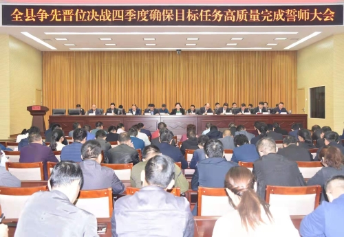 乘著周口市2019年第三季度項(xiàng)目觀摩的東風(fēng),扶溝吹響了決戰(zhàn)第四季度、奮力推動(dòng)經(jīng)濟(jì)社會(huì)高質(zhì)量發(fā)展的“沖鋒號(hào)”。10月21日,扶溝縣召開爭(zhēng)先晉位決戰(zhàn)四季度確保全縣目標(biāo)任務(wù)高質(zhì)量完成誓師大會(huì),深入貫徹習(xí)近平總書記在河南考察調(diào)研指示精神,動(dòng)員全縣上下進(jìn)一步認(rèn)清形勢(shì),堅(jiān)定信心,鼓足干勁,加大力度,大干苦干,決戰(zhàn)決勝,全力以赴做好第四季度工作,確保全年目標(biāo)任務(wù)高質(zhì)量完成。張穎波、詹凱、姜永來、張建中等縣四個(gè)班子領(lǐng)導(dǎo)出席會(huì)議??h委副書記、政法委書記詹凱主持會(huì)議。