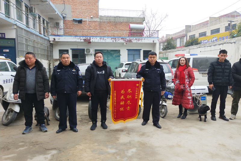 12月24日,鄲城縣寧平派出所報請縣公安局批準,召開退贓大會,向群眾發(fā)還破案追繳的4輛摩托車、1輛電動車、1臺空調(diào)等贓物。廣大群眾拍手稱贊,并將一面印有“盡職盡責(zé),為民解憂”的錦旗送給辦案民警,以示感謝。