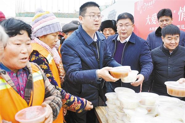 1月2日上午,商水縣在城區(qū)6處人流集中的地方設(shè)立免費(fèi)送粥點(diǎn),1000多碗臘八粥香飄四處,溫暖全城。圖為臘八粥發(fā)放現(xiàn)場(chǎng)。記者 付永奇 攝