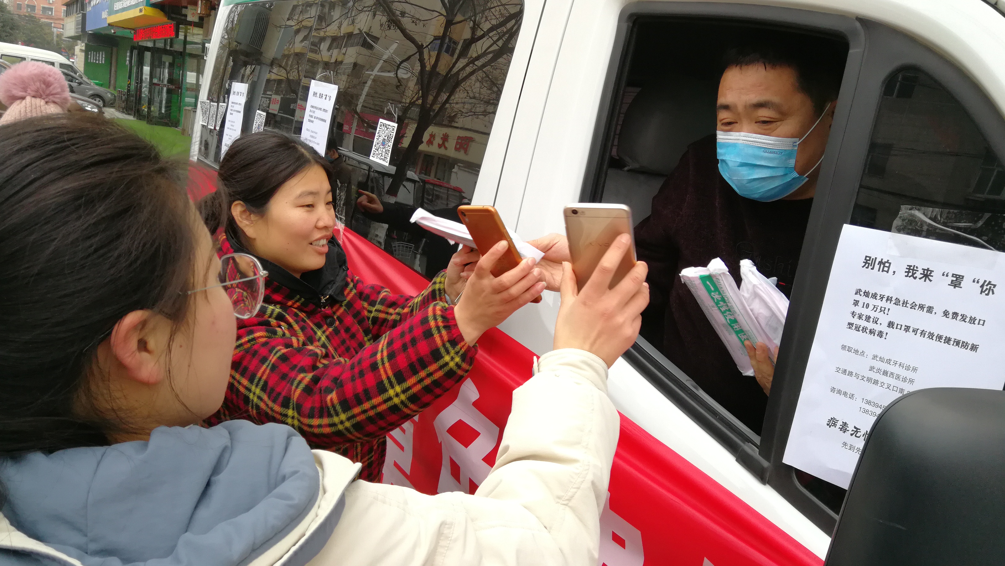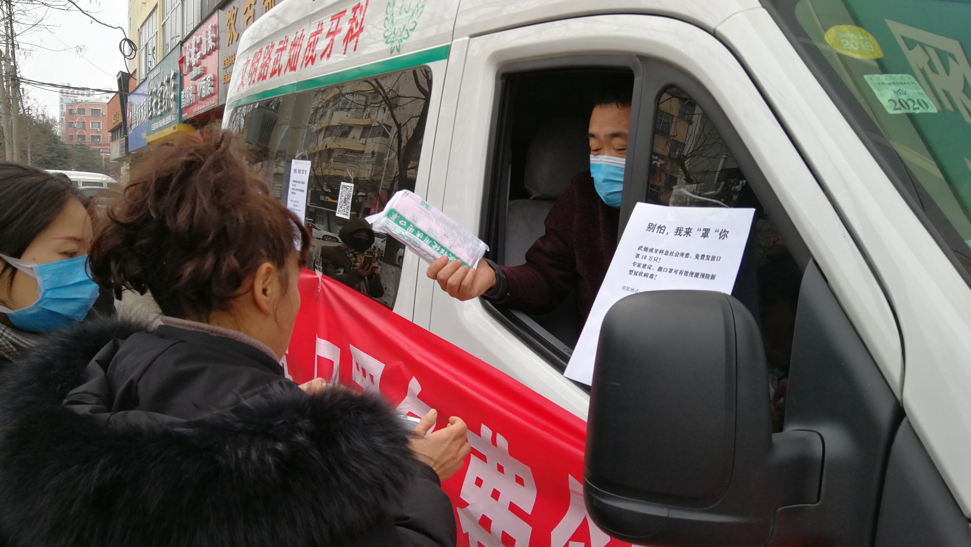 為應(yīng)對(duì)新型冠狀病毒肺炎和流感季,1月23日,文明路中段一家診所特采購(gòu)了十萬(wàn)只一次性使用醫(yī)用口罩,免費(fèi)發(fā)放給過(guò)路市民,受到人們的交口稱贊。記者 王映 攝