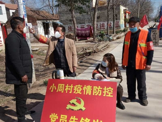 在虎崗鄉(xiāng)小周行政村路口的疫情防控黨員先鋒崗,3名入黨積極分子自發(fā)進行輪流值守,積極向群眾宣傳疫情防控知識,勸散聚集人員?!霸谝咔榉揽毓ぷ髦?,我們村及時響應,設立了黨員先鋒崗,組織黨員和入黨積極分子參與卡點執(zhí)勤、疫情知識宣傳、摸底排查,建立起聯(lián)防聯(lián)控、群防群治的工作體系?!编惓强h農(nóng)科所駐該村第一書記謝付振說。