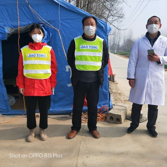 3月9日,春雨淅瀝,劉志杰仍在村口卡點(diǎn)冒雨堅(jiān)守崗位。女兒劉苗苗此時(shí)正在村里登記排查,為村民測(cè)試體溫,父女倆一個(gè)內(nèi)防疫情輸入,一個(gè)外防疫情擴(kuò)散,點(diǎn)上嚴(yán)管,面上嚴(yán)查,這感人一幕,將會(huì)深深印刻在任莊行政村村民們的腦海中!