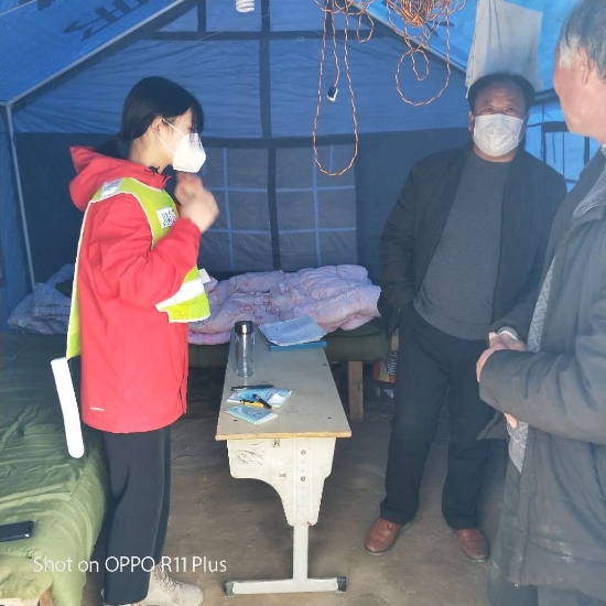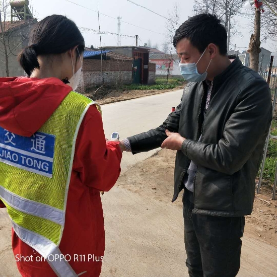按照分工,劉苗苗在村防疫卡點(diǎn)負(fù)責(zé)村里疫情排查工作。為了做到排查不漏一戶、宣傳不漏一人,防控不染一人。她挨家挨戶、如同警察查戶口,嚴(yán)肅認(rèn)真。在排查中,她發(fā)現(xiàn)該村竟然有三人是從湖北武漢疫區(qū)回鄉(xiāng)人員,隱患不除,后患無(wú)窮。這三人成了她重點(diǎn)關(guān)注的對(duì)象。一天三次登門(mén)給他們測(cè)試體溫,勸誡他們?cè)诩腋綦x,自覺(jué)做到不出門(mén)、不串門(mén),關(guān)心他人就是關(guān)心自己,一人不感染,全村都安全??吹揭幻髮W(xué)生冒著風(fēng)險(xiǎn)服務(wù)大家都很受感動(dòng),村民們自覺(jué)在家防感染,沒(méi)有非法聚集、扎堆聊天等現(xiàn)象發(fā)生。