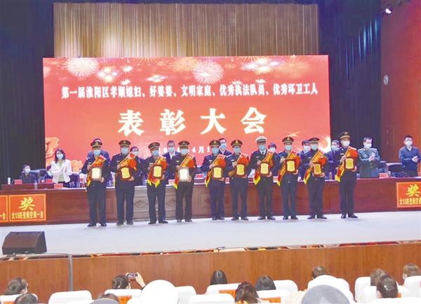 4月17日下午,淮陽區(qū)在區(qū)群藝館報告大廳對孝順媳婦、好婆婆、文明家庭、優(yōu)秀執(zhí)法隊員、優(yōu)秀環(huán)衛(wèi)工人進(jìn)行了表彰。