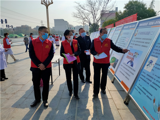 4月26日是我國(guó)第十三個(gè)“全國(guó)瘧疾日”。 今年的宣傳主題是“消除瘧疾控新冠,同防輸入再傳播”。4月24日,鄲城縣疾控中心在世紀(jì)廣場(chǎng)開展了瘧疾防治系列宣傳活動(dòng)??h人大常委會(huì)副主任張愛(ài)聯(lián)、縣衛(wèi)健委主任付登霄在縣疾控中心主任張吉志陪同下參觀了宣傳活動(dòng)。