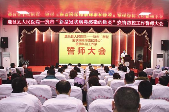 下午4時(shí),老子故里鹿邑縣,縣域醫(yī)療健康服務(wù)集團(tuán)牽頭單位、該縣規(guī)模最大的綜合性二級甲等公立醫(yī)院——縣人民醫(yī)院正在召開新冠肺炎疫情防控工作誓師會。