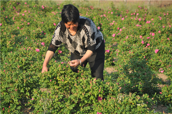 2015年,在昆明、鄭州等地從事花卉經(jīng)營銷售十多年,積累了一定經(jīng)驗和資本的劉軍停返鄉(xiāng)流轉(zhuǎn)土地種植藥用玫瑰400多畝,目前已到采摘期。這些玫瑰經(jīng)分揀、烘干等初加工后銷售到南方某醫(yī)藥公司進(jìn)行深加工,花農(nóng)每畝可收入7000元左右。