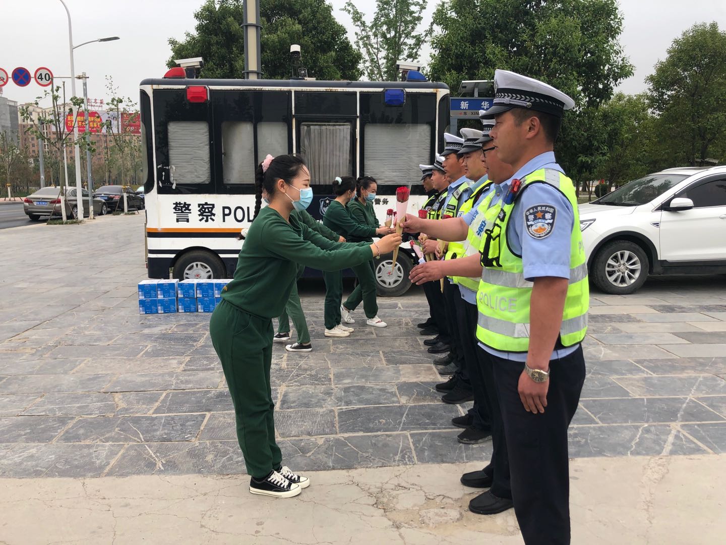 5月5日上午8時,鄲城縣小牛津幼兒園的教師帶著錦旗、礦泉水等慰問品,來到鄲城交警大隊城市一中隊執(zhí)勤崗點,親切慰問一線執(zhí)勤交警。
