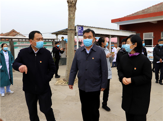 (2020年2月26日,市委書記劉繼標(biāo)在鄲城縣虎崗鄉(xiāng)村衛(wèi)生室聽取羅文閣、李全林關(guān)于醫(yī)共體建設(shè)工作匯報。)