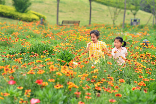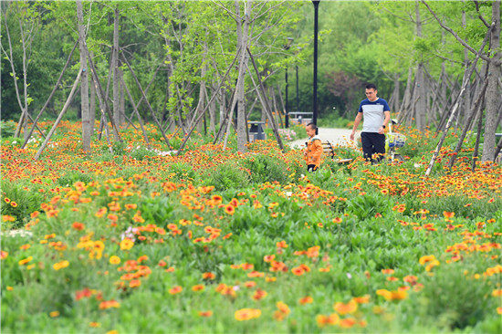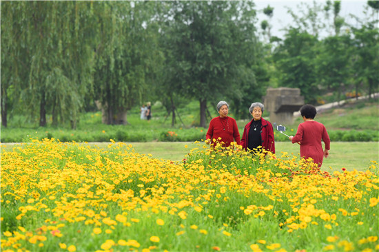 5月17日,市民徜徉在東方園林的花海中,暢享休閑樂(lè)趣。近期,位于沙潁河南岸的東方園林內(nèi),成片的天人菊等花卉相繼盛開,猶如五彩的花海,不少市民來(lái)些游玩、拍照。