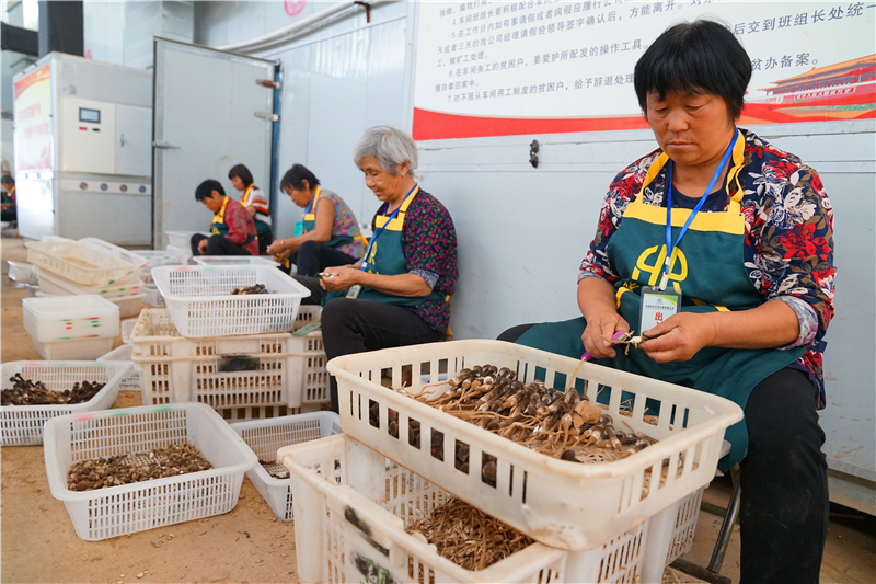 在大許寨鎮(zhèn)羅古洞村華瑞農(nóng)牧食用菌基地的包裝車間內(nèi),60多歲的村民王梅芝在和其他工人們一起包裝羊肚菌。她說,自己每月有1000多元的收入、“不用外出,在家門口掙錢,還能照顧孫子?!蓖趺分フf。